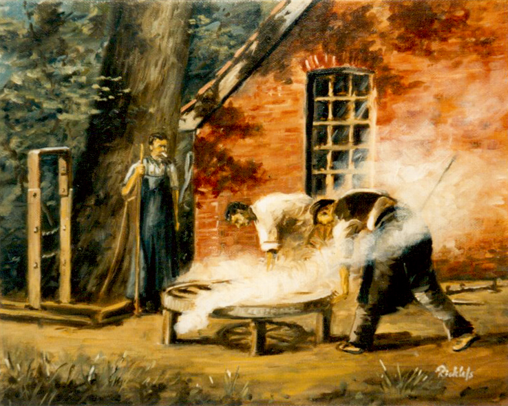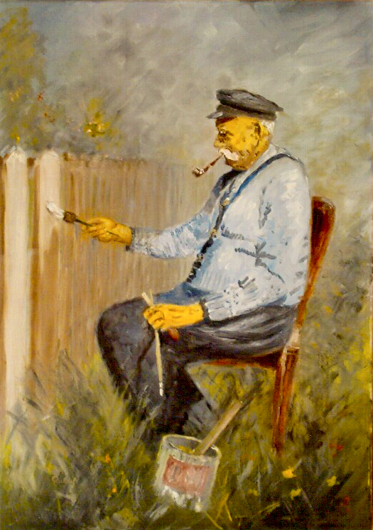 Opa Behrmann malt seinen Zaun. 70x50
