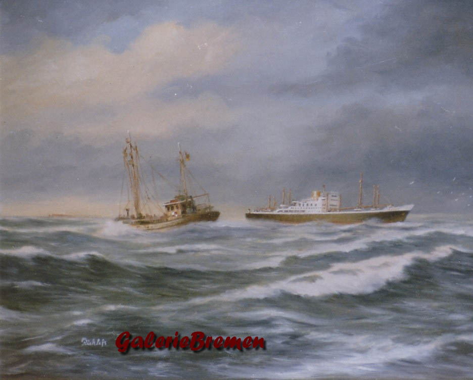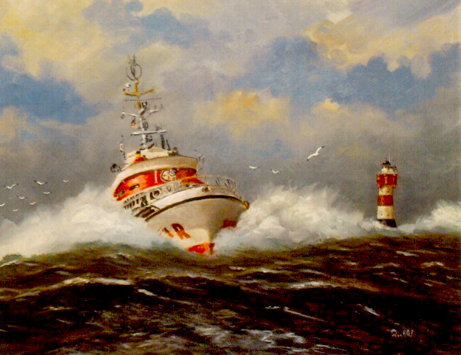 Seenotkreuzer beim Leuchtturm ROTERSAND. 40x50